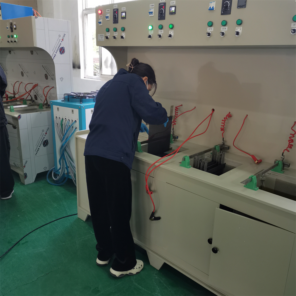 江蘇夢得研發室通過近幾年的對外交流,集合團隊的智慧,設計開發瞭(le)一套電鍍試驗一體機。該試驗系統集成瞭(le)多個電鍍槽體,並(bìng)對每個槽體配備瞭(le)溫控系統、電解液循環過濾系統 、電源控制系統,並(bìng)實現陰陽極距離可調,可模拟多種電鍍工藝的生産現場。電鍍試驗一體機不僅可以做電鍍實驗,還能夠做标箔後處理的實驗,實現标箔後處理工藝中鍍銅、粗化、固化、鍍鋅鎳、鍍鉻以及防氧化塗覆的需求,從而對各個工序實現改良和突破。用試驗方法模拟電鍍生産(chǎn)工藝條件的必要性 ,爲越來越多的廣大科研工作者和生産(chǎn)廠(chǎng)家所認識。通過模拟試驗,能夠爲改進工藝操作,研究新電鍍液配方及新的處理方法等提供可靠手段 ,從而達到提高生産(chǎn)質量及産(chǎn)量的目的。