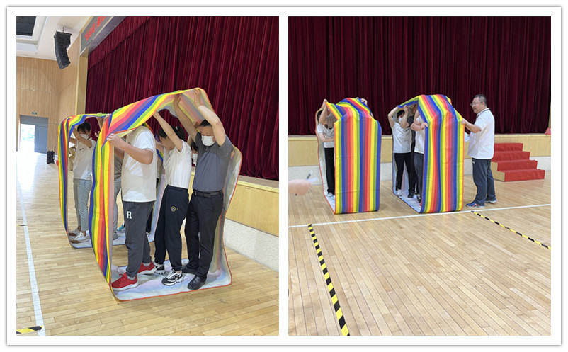 在活動的最後,公司組織瞭(le)“一家人”彩虹傘遊戲,現場進行抽簽分組,每16個人爲一個團隊,這個項目需要大家通力合作,互幫互助,才能取得最後的勝利。一家人的拼搏 、團結、親密無間通過此項目表現的淋漓盡緻。大家從一開始的生疏到熟悉,到默契度不斷提高,直至能克服每一個人的體力極限,共同的爲著(zhe)一個目标(傳球成功數字)的增加,“41”“42”“43”......體現著(zhe)夢得這一個大家庭共同攀登的心願,以及達到頂峰的激情,這樣的畫面會永久的留在每一位夢得人的腦海裏,時時刻刻在促進大家,提醒大家,我們是一家人,我們需要攜手向前,共創輝煌!