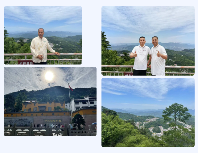 第二天,各位領導在早餐後,來到瞭(le)九華山風景區。九華山以地藏菩薩道場馳名天下,享譽海内外。山上群峰競秀,怪石嶙峋,山泉潺潺,飛瀑轟鳴,松柏遒勁,廟宇毗連,晨鍾暮鼓,引人流連。作爲一種文化自然,九華山千百年來承載著(zhe)民間對地藏精神的信仰,後人建肉身塔供奉,九華山化城寺亦被辟爲地藏菩薩靈迹。在九華靈山境地,董事長帶領各位核心層領導一同登山,祈福公司佛光庇佑,平穩發展,祈福大家福慧雙增,吉祥安康!