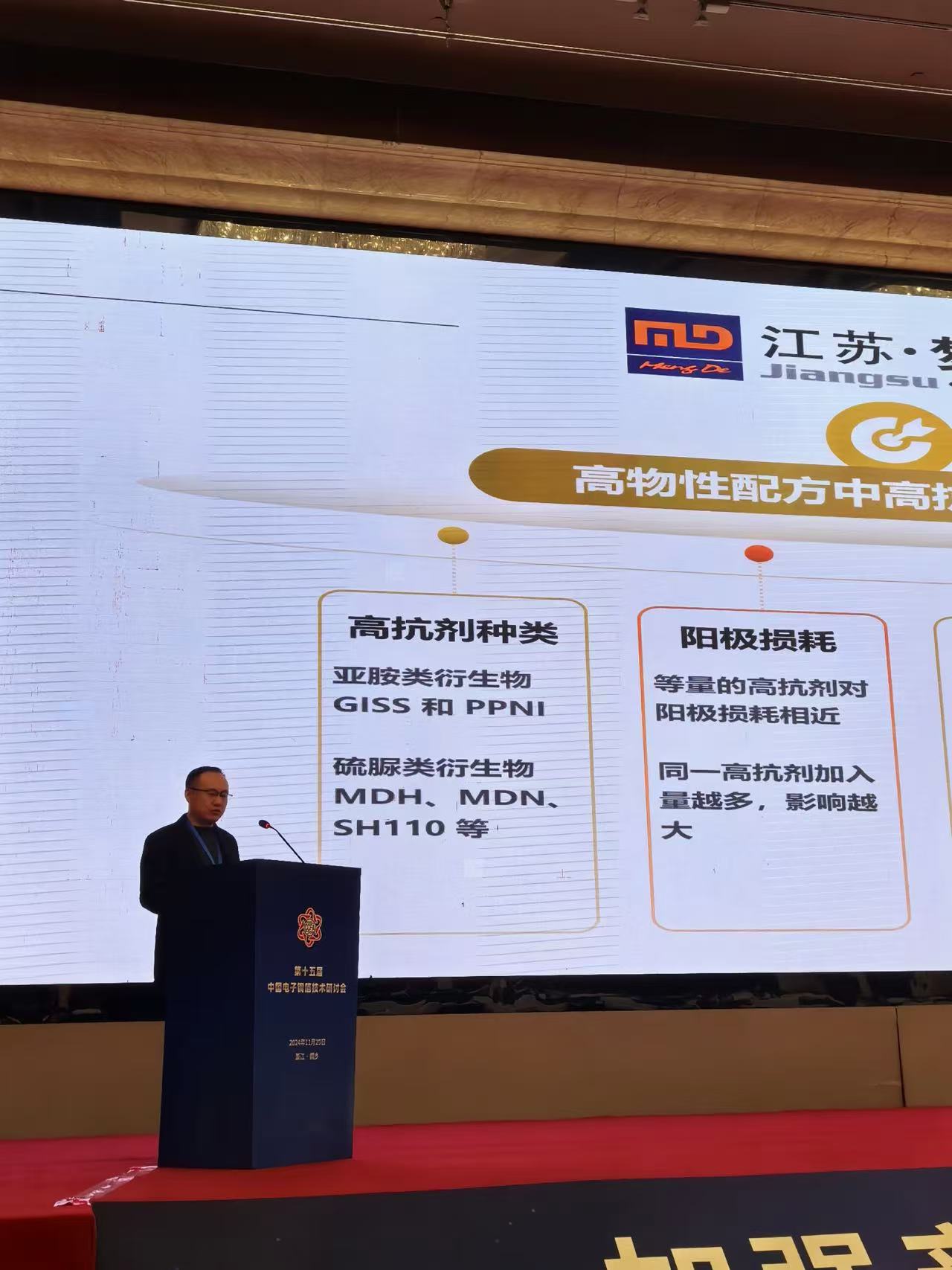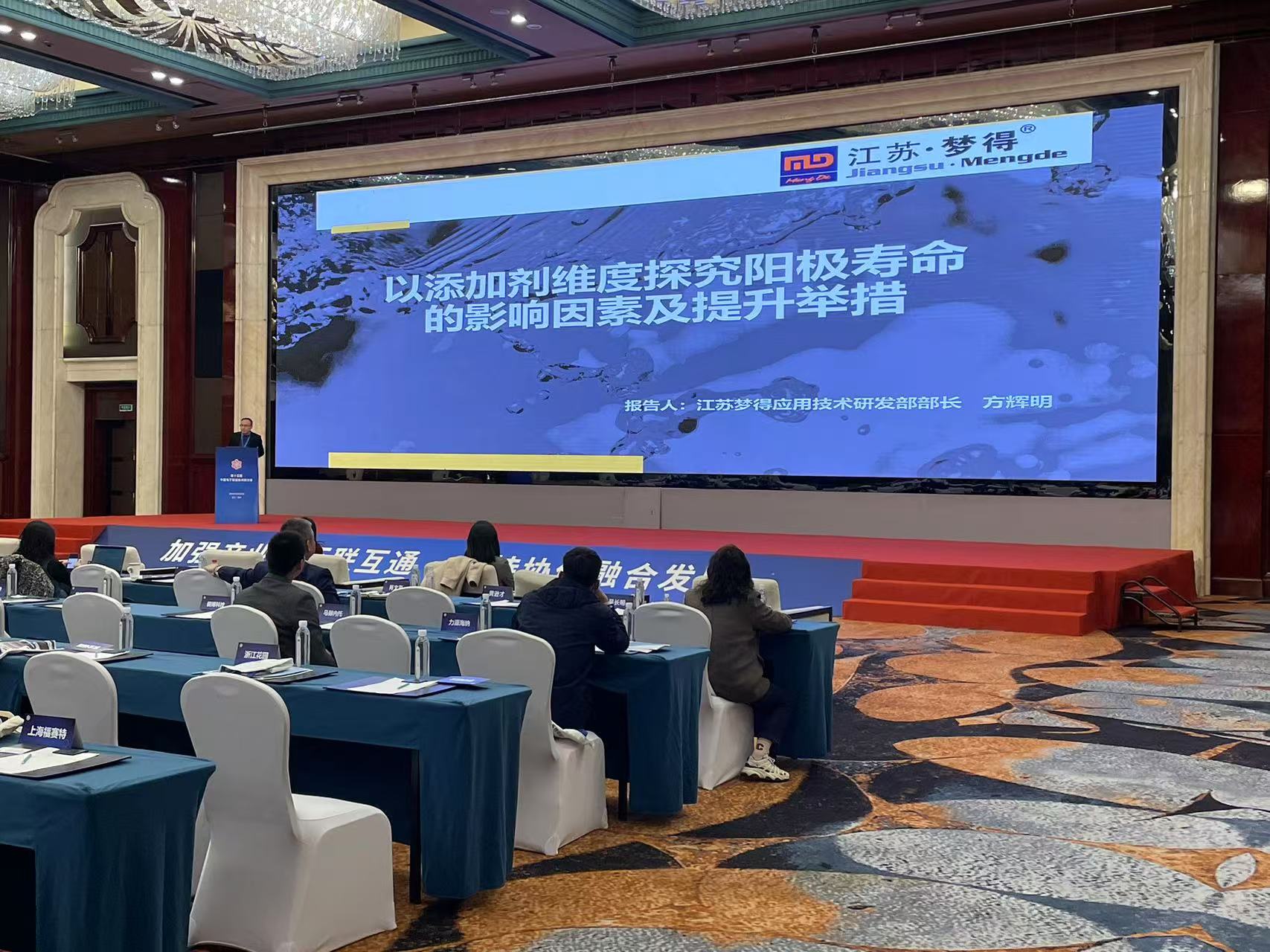 次日,行業研讨會拉開帷幕,江蘇夢得技術應用研發部部長方輝明先生的精彩報(bào)告成爲瞭(le)會議的一大亮點。方輝明先生在其《以添加劑維度探究陽極壽命的影響因素及提升舉措》的報(bào)告中,深入剖析瞭(le)不同類型銅箔添加劑對陽極使用壽命的影響程度。特别指出,随著(zhe)超高性能銅箔逐漸成爲市場(chǎng)主流,添加劑配方的複雜性對陽極性能及壽命的影響愈發顯著,這爲銅箔企業如何降本增效提出瞭更高挑戰。
