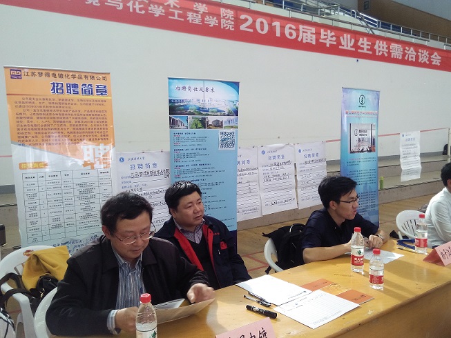 江蘇科大環化學院與公司是友好合作單位,11月6日公司許總、人資部莊主管、公司顧問李老師一同參加瞭江蘇科技大學環境與化學工程學院2016屆畢業生供需洽談會。