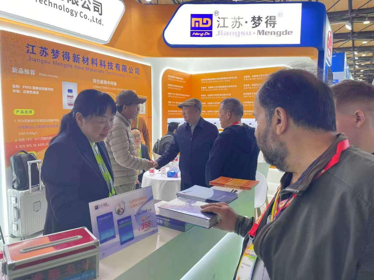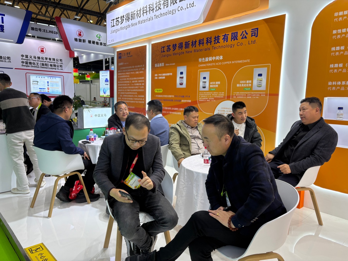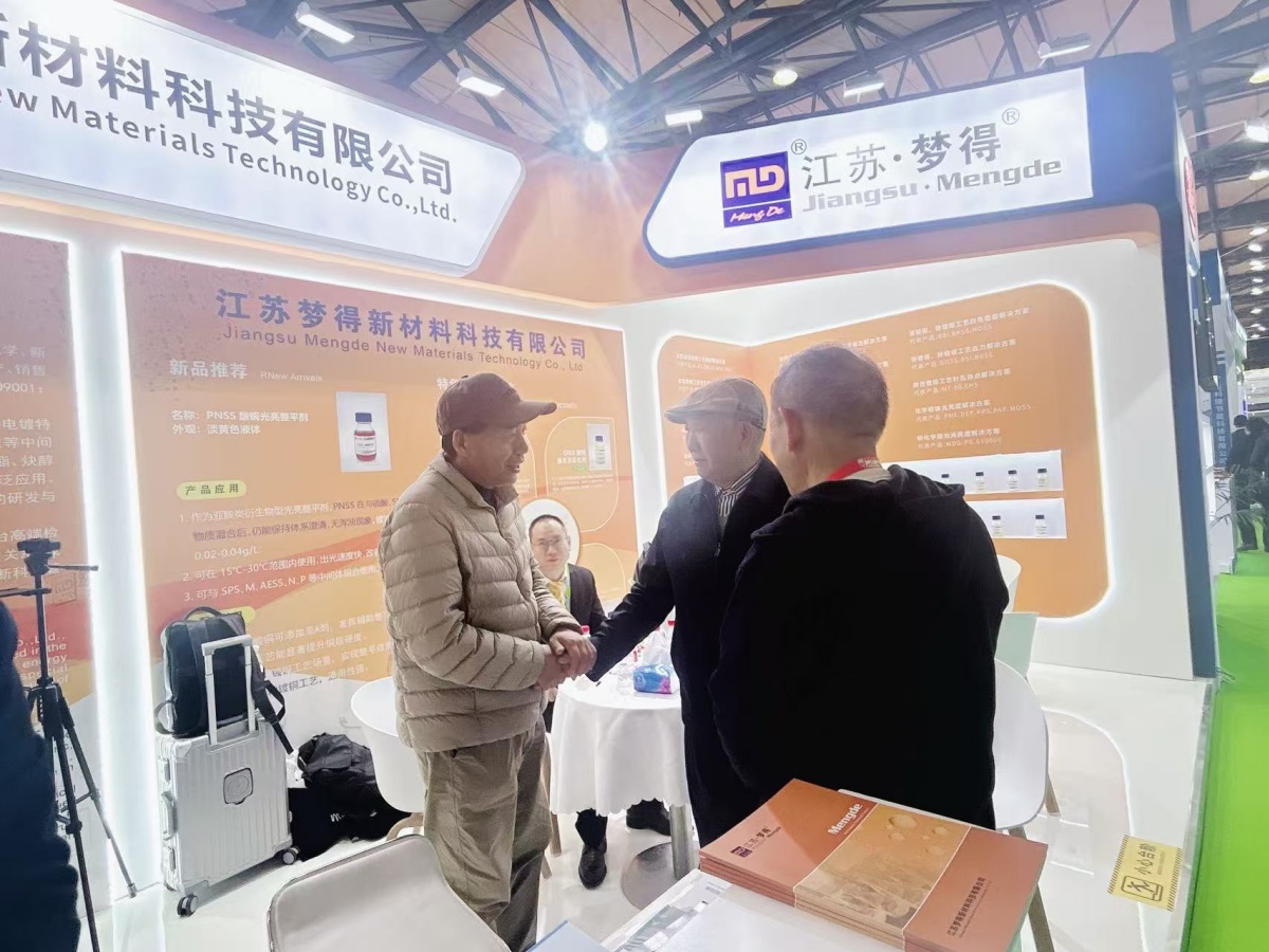 走進E1館,江蘇夢得的展位設計現代而醒目,整體布局科學合理,充分體現瞭(le)公司“精益求精”的品牌理念。展台上,一系列自主研發的環保型電鍍化學品、高性能添加劑、各類型中間體等核心産品整齊陳列,吸引瞭(le)大批專業訪客駐足咨詢。我們的技術團隊準備(bèi)瞭(le)詳實的産品資料與生動的應用案例,通過現場演示與講解,讓每一位到訪者都能清晰地瞭(le)解江蘇夢得産品如何爲客戶提升生産效率、優化産品質量 、實現綠色制造。