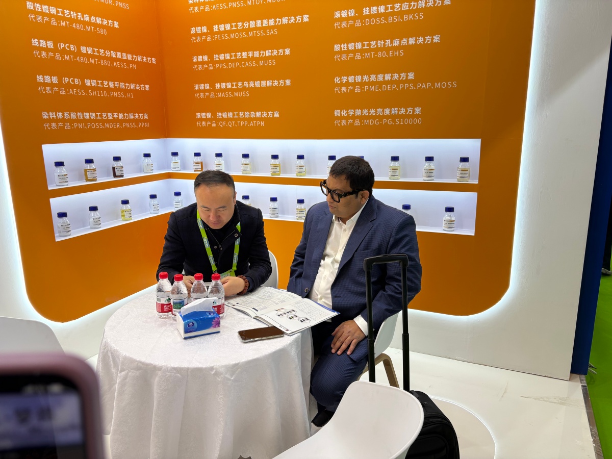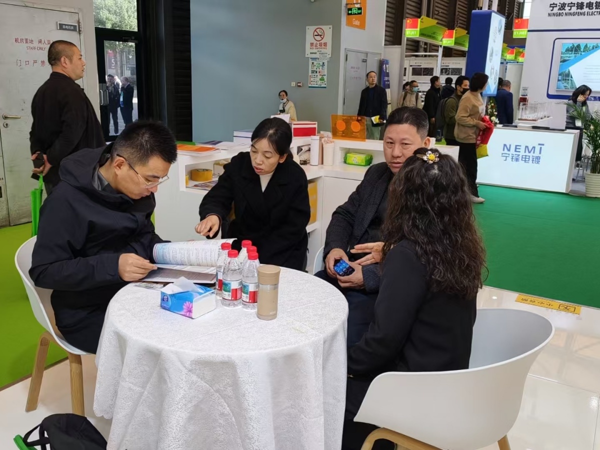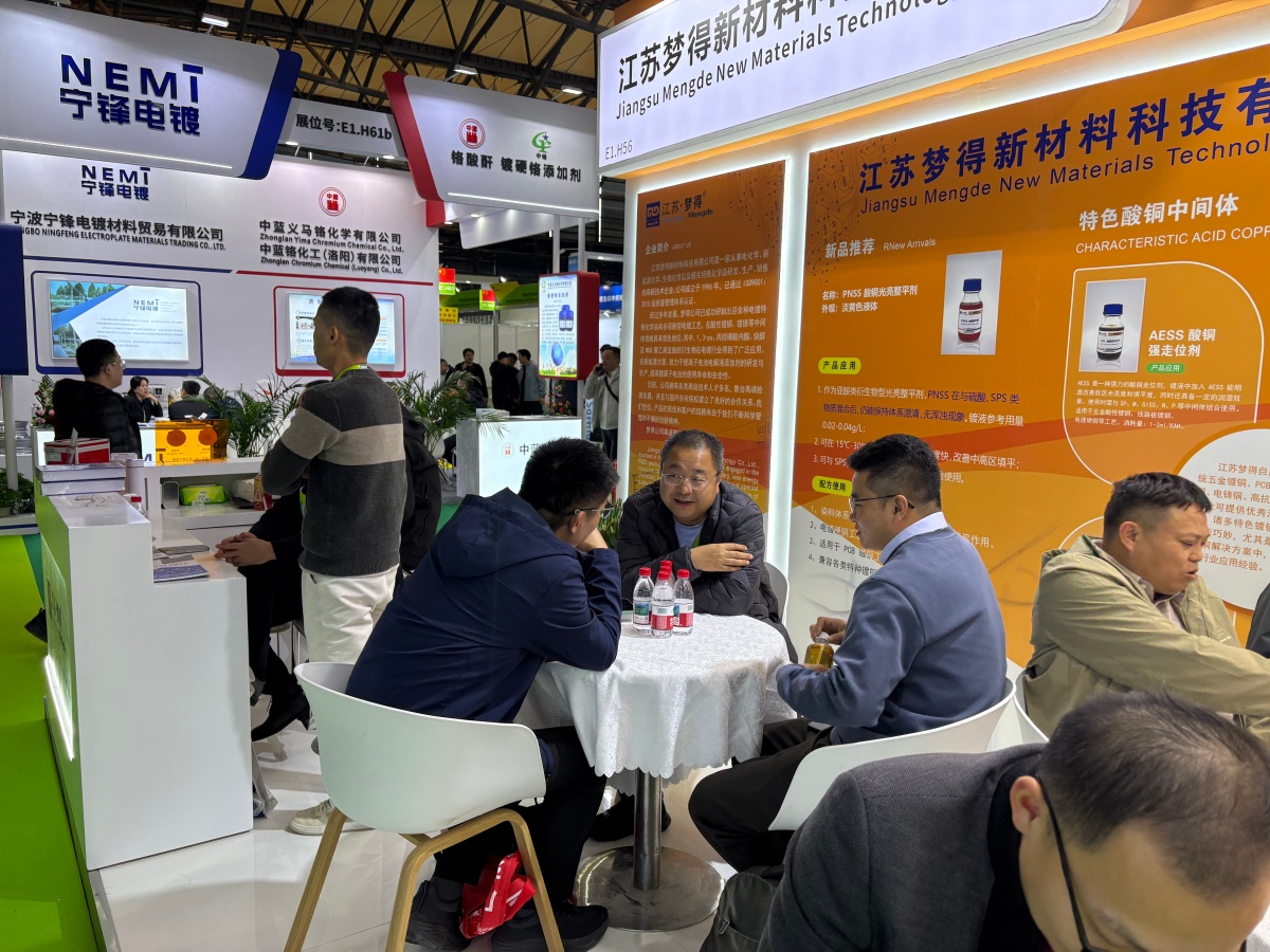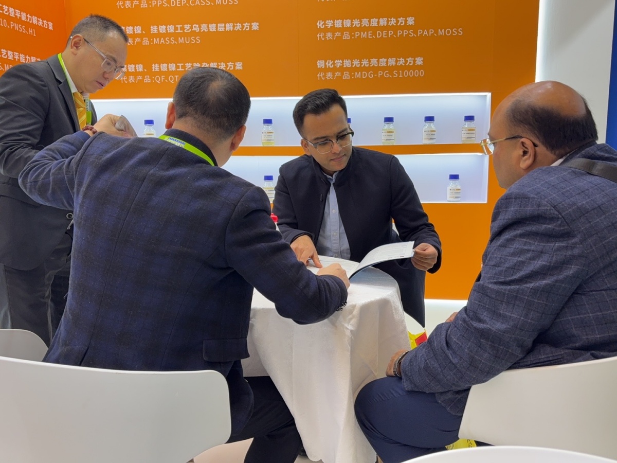 走進E1館,江蘇夢得的展位設計現代而醒目,整體布局科學合理,充分體現瞭(le)公司“精益求精”的品牌理念。展台上,一系列自主研發的環保型電鍍化學品、高性能添加劑、各類型中間體等核心産品整齊陳列,吸引瞭(le)大批專業訪客駐足咨詢。我們的技術團隊準備(bèi)瞭(le)詳實的産品資料與生動的應用案例,通過現場演示與講解,讓每一位到訪者都能清晰地瞭(le)解江蘇夢得産品如何爲客戶提升生産效率、優化産品質量 、實現綠色制造。