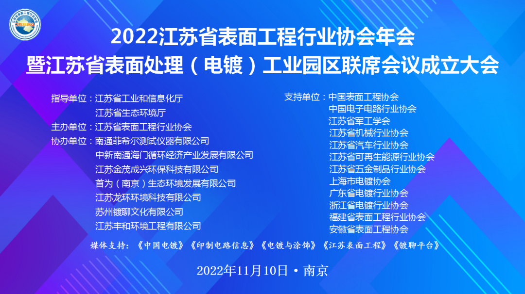 2022年11月10日由江蘇省表面工程行業協會主辦(bàn)的“2022年江蘇省表面工程行業協會年會暨江蘇省表面處理(電鍍)工業園區聯席會議(以下簡稱:聯席會)成立大會”在江蘇省會議中心舉辦(bàn),江蘇夢得新材料科技有限公司董事長杭冬良先生 、總經理杭康先生受邀參加瞭(le)此次會議。