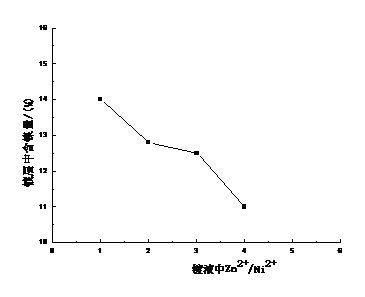 鍍液中Zn2+ / Ni2+ 質量比鍍層外觀影響不大,但對鍍層中含鎳量影響較大,參看圖3-1。針對鍍層中鎳含量控制13%左右,應控制Ni2+ / Ni2+ +Zn2+ 爲0.16~0.32爲優。